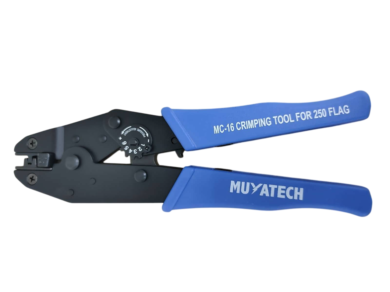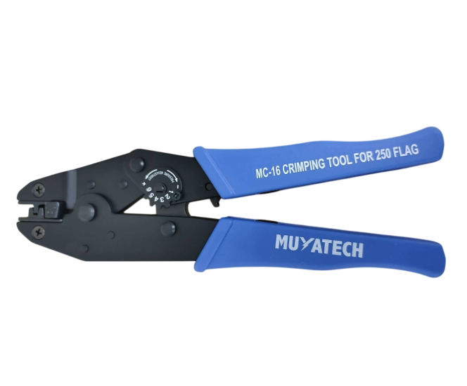 MC-16 (YAC-16) 1,50 - 2,50 mm² Eğri Terminal Sıkma Pensesi, Muyatech markasının ürettiği, 1,50 mm² ile 2,50 mm² kesit alanına sahip eğri (bayrak tip) terminalleri sıkmak için tasarlanmış bir el aletidir. Elektrik tesisatlarında ve kablolama işlerinde güvenli ve sağlam bağlantılar oluşturmak amacıyla kullanılır.