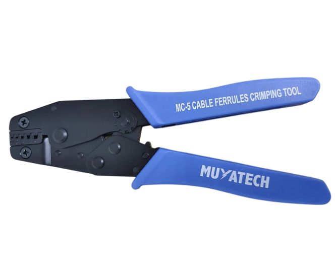 MC-5 (YAC-5) 0,50 - 6,00 mm² Muyatech Yüksük Sıkma Pensesi, 0,50 ile 6,00 mm² arasındaki izoleli ve izolesiz kablo yüksüklerini sıkmak için tasarlanmış bir el aletidir. "Muyatech" markası, bu pensesinin üreticisi veya satıcısı olabilir.